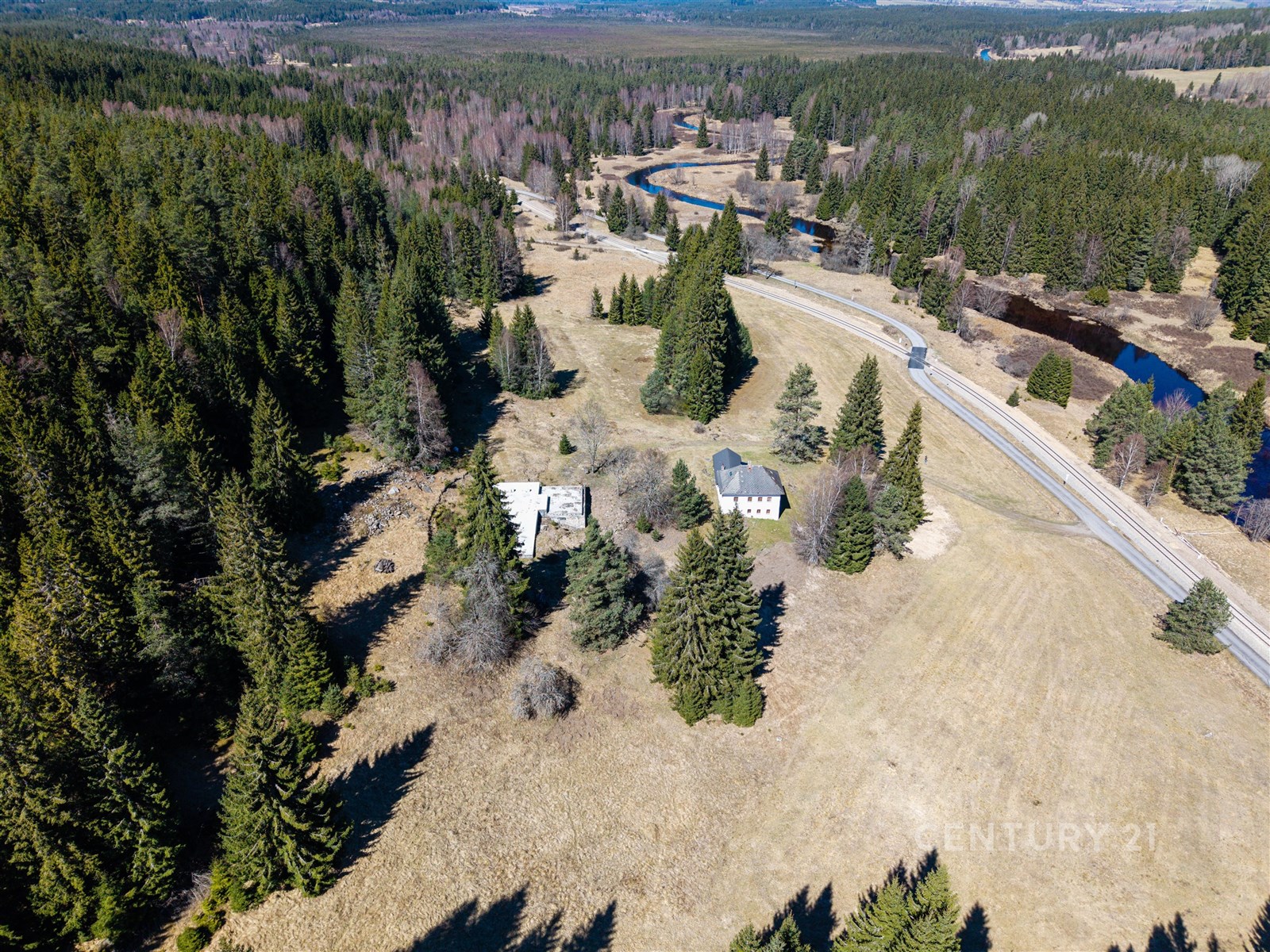 Fotografie 22/25 Horské prostředí se dvěma budovami obklopenými les